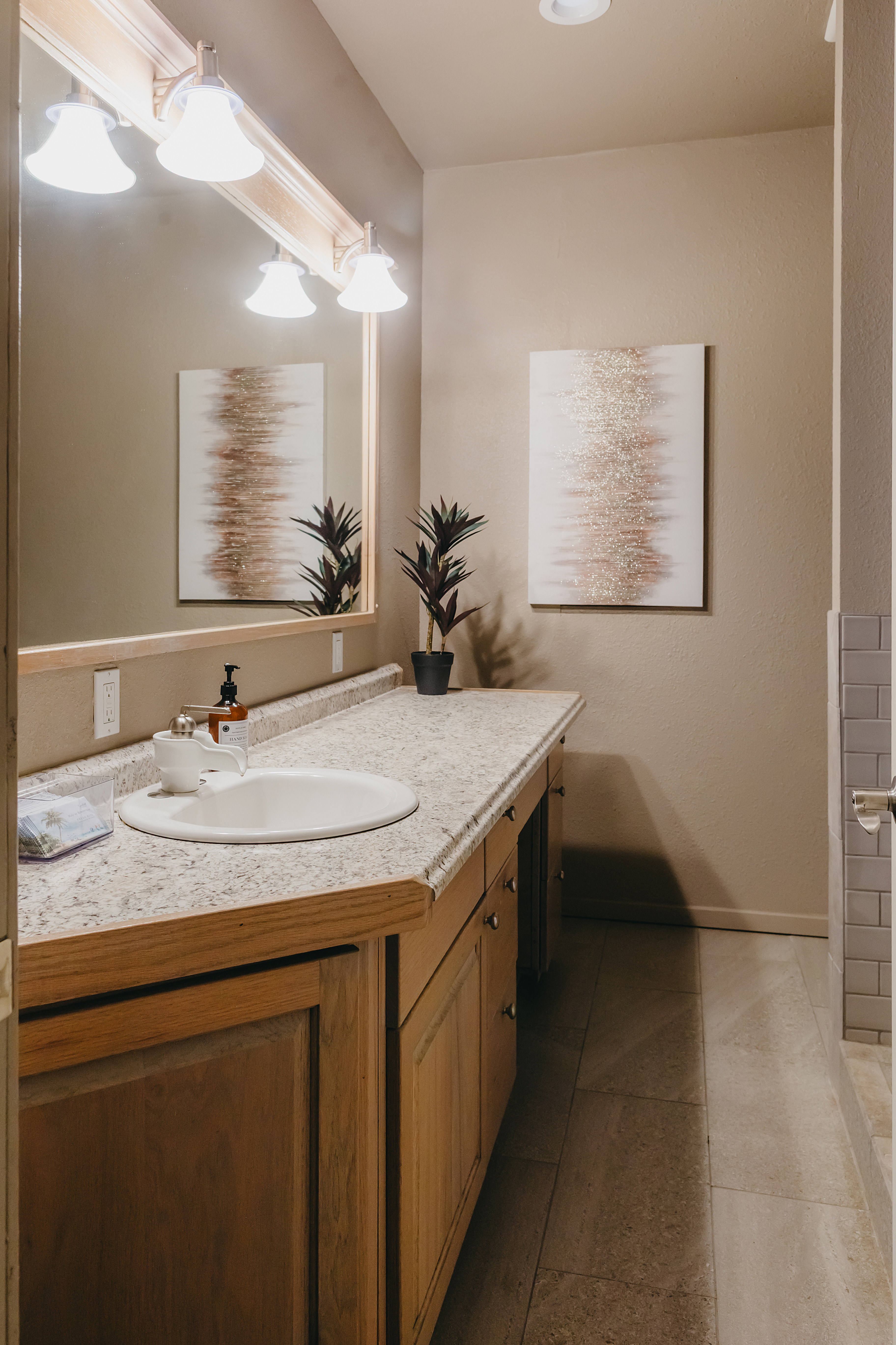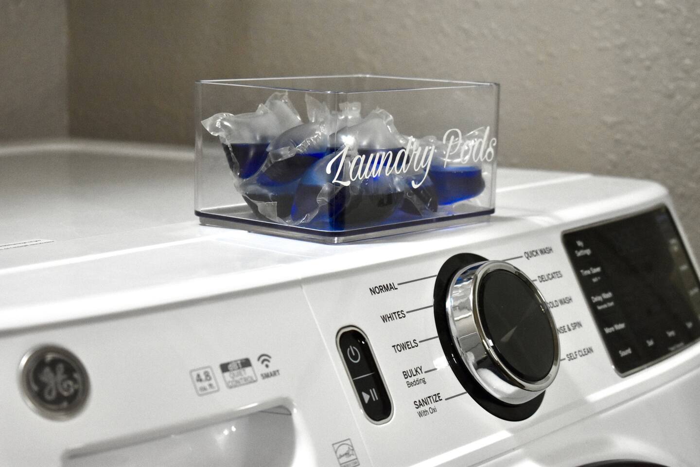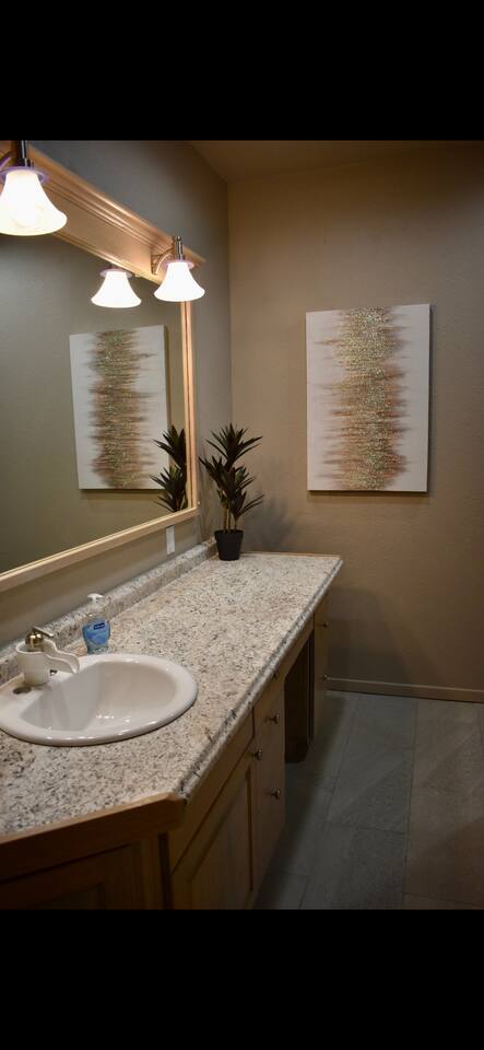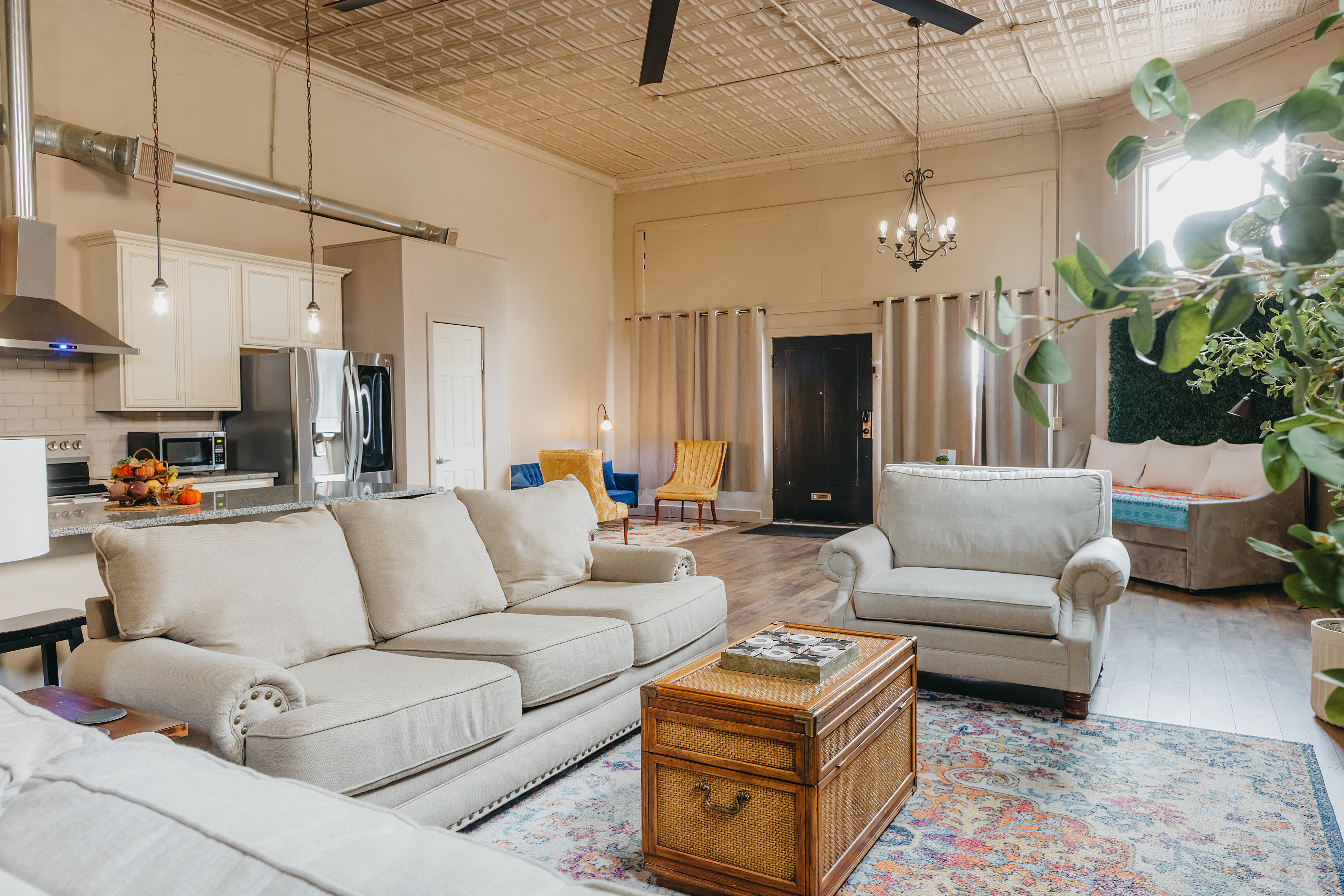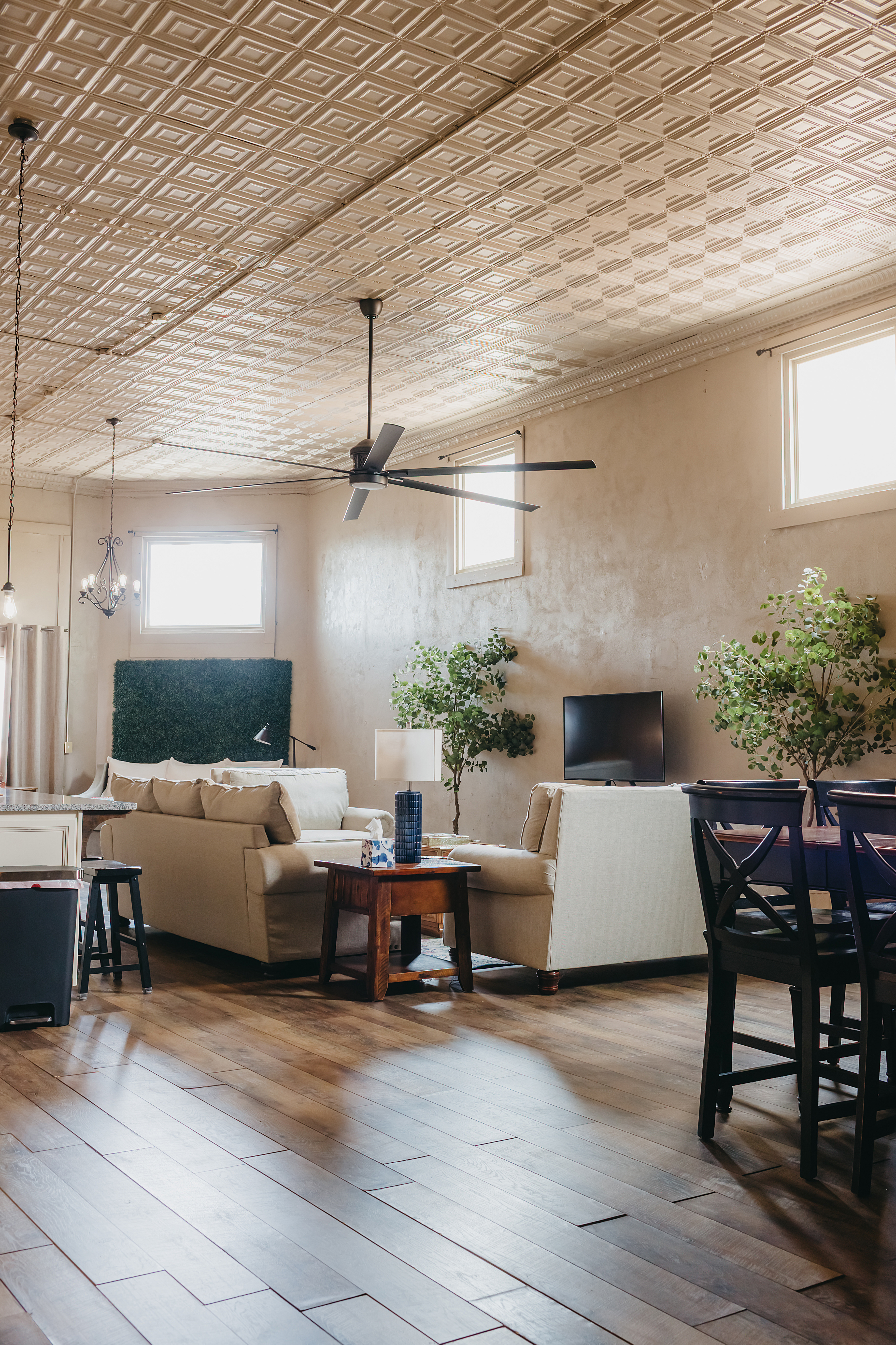 Relax in Style and Comfort Unwind in the chic, spacious living area featuring a plush couch, cozy loveseat, and an oversized armchair perfect for lounging. Enjoy your favorite shows on the Smart TV with high-speed Wi-Fi—ideal for streaming or getting work done remotely. The dining table comfortably seats up to eight, making it the perfect spot for family meals, game nights, or catching up over coffee. A curated collection of board games is provided to add a little extra fun to your stay. Fully Equipped Kitchen Whether you’re preparing a full meal or grabbing a quick bite, the fully stocked kitchen has everything you need: Essential cookware and utensils Dishes, cutlery, and wine glasses Keurig coffee maker with a generous supply of K-Cups, creamer, and sugar Bottle opener and other kitchen essentials Comfortable Sleeping Arrangements The primary bedroom features a plush queen bed, ample closet space, and a nightstand with easy-access charging ports. The second bedroom includes a versatile trundle bed, spacious closet, and a luggage rack—fresh sheets and pillows for the trundle are provided. Need extra sleeping space? The living room offers a stylish daybed with a trundle, comfortably accommodating two additional guests. Fresh linens and pillows are stored in the primary bedroom’s main closet. Please note: There is a 10-inch step up to access the bedrooms and bathrooms. Bathrooms & Essentials Two well-appointed bathrooms come fully stocked with: Toilet paper Body wash Shampoo & conditioner Hand soap Hair dryers Additional Amenities In-unit washer and dryer with detergent Iron and ironing board