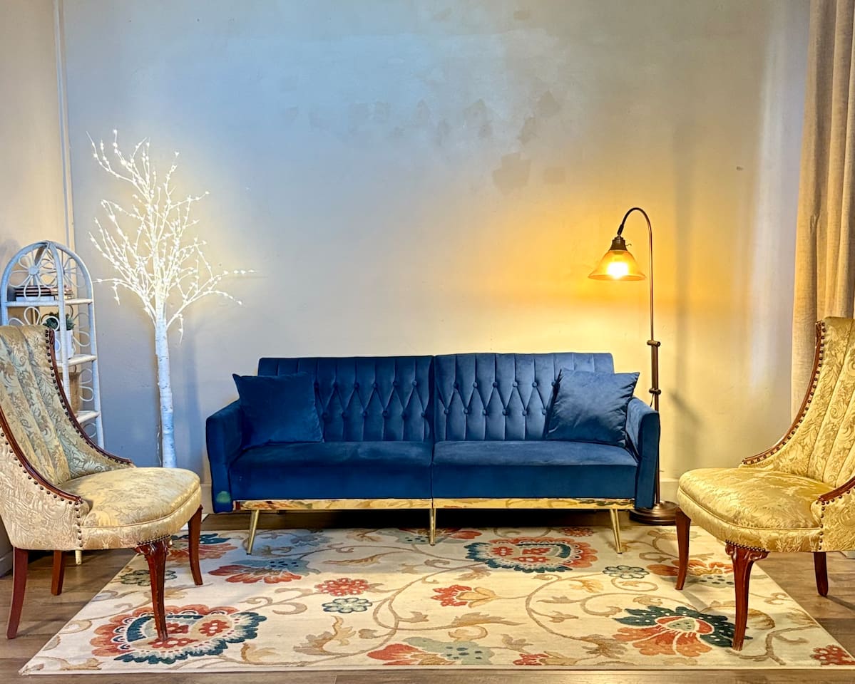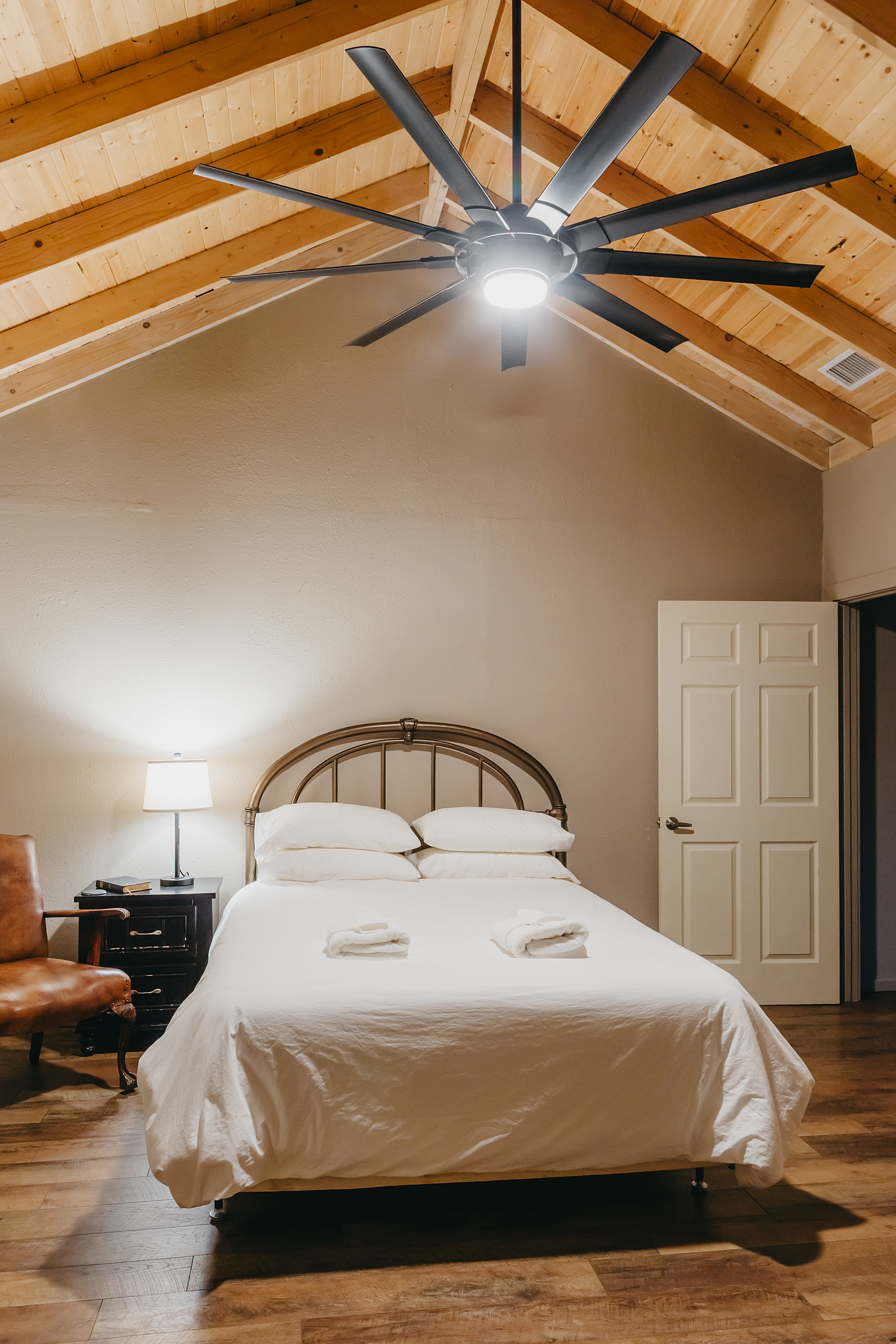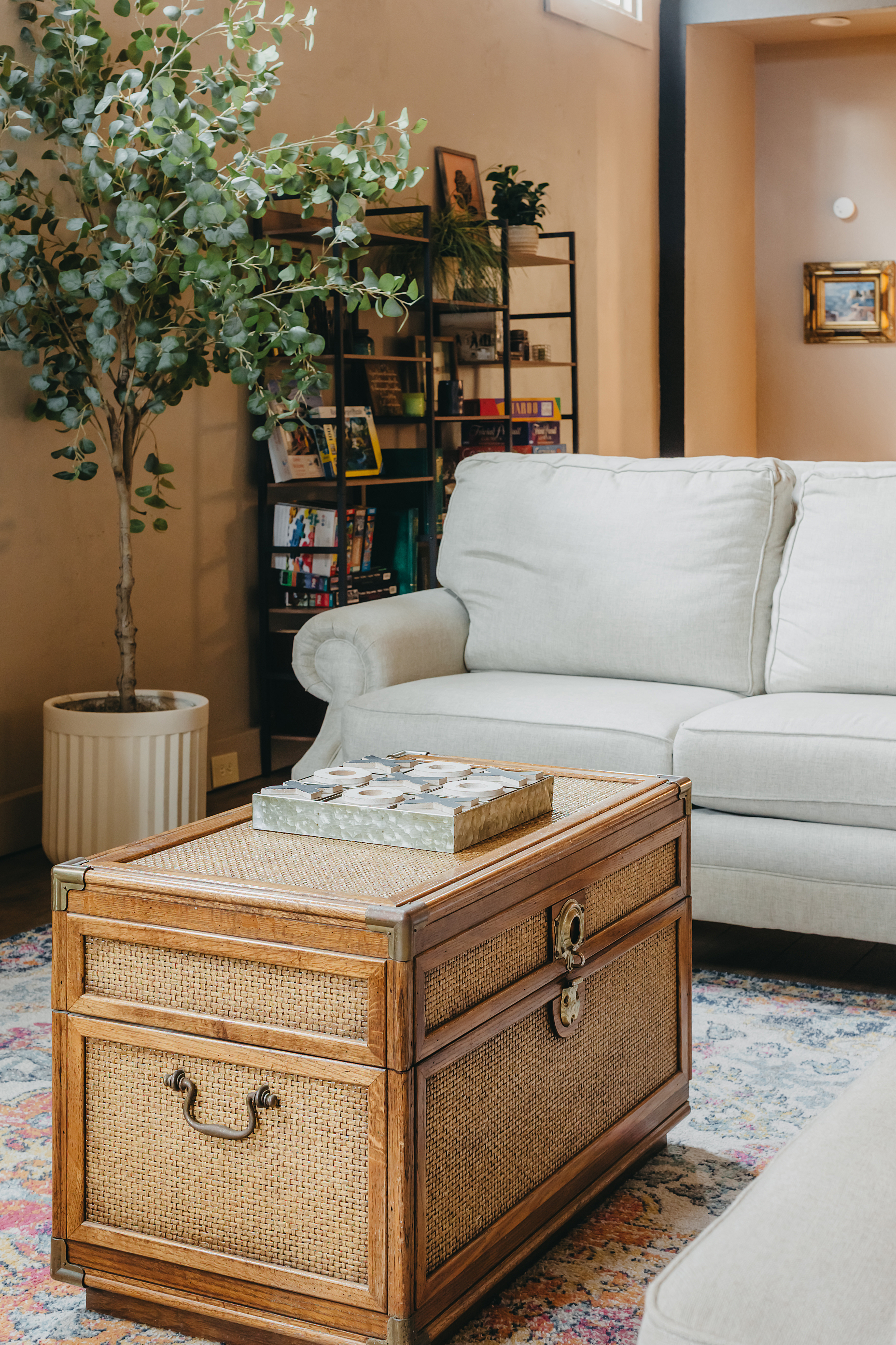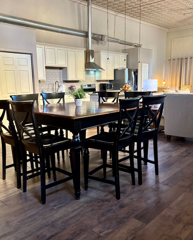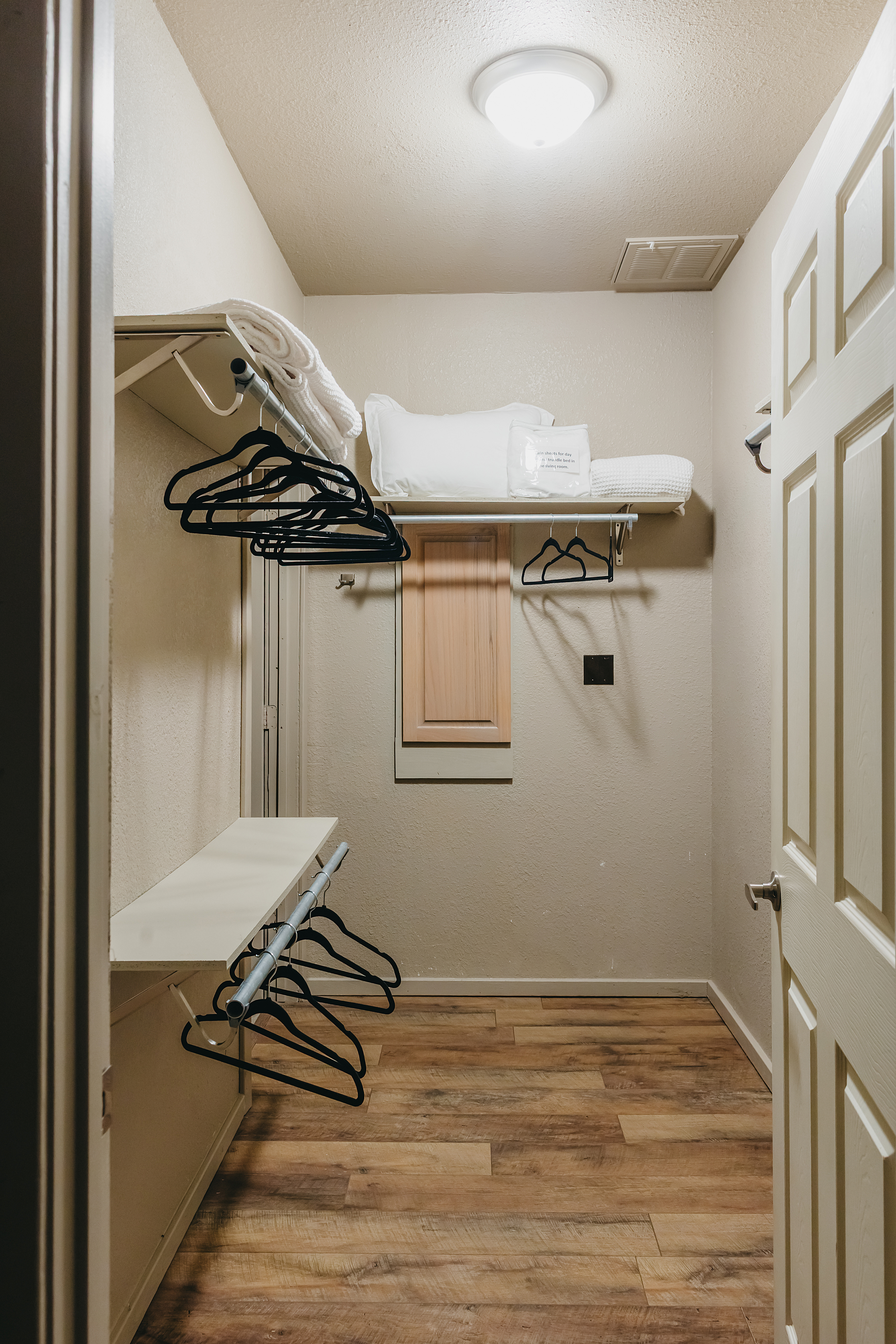 Relax in Style and Comfort Unwind in the chic, spacious living area featuring a plush couch, cozy loveseat, and an oversized armchair perfect for lounging. Enjoy your favorite shows on the Smart TV with high-speed Wi-Fi—ideal for streaming or getting work done remotely. The dining table comfortably seats up to eight, making it the perfect spot for family meals, game nights, or catching up over coffee. A curated collection of board games is provided to add a little extra fun to your stay. Fully Equipped Kitchen Whether you’re preparing a full meal or grabbing a quick bite, the fully stocked kitchen has everything you need: Essential cookware and utensils Dishes, cutlery, and wine glasses Keurig coffee maker with a generous supply of K-Cups, creamer, and sugar Bottle opener and other kitchen essentials Comfortable Sleeping Arrangements The primary bedroom features a plush queen bed, ample closet space, and a nightstand with easy-access charging ports. The second bedroom includes a versatile trundle bed, spacious closet, and a luggage rack—fresh sheets and pillows for the trundle are provided. Need extra sleeping space? The living room offers a stylish daybed with a trundle, comfortably accommodating two additional guests. Fresh linens and pillows are stored in the primary bedroom’s main closet. Please note: There is a 10-inch step up to access the bedrooms and bathrooms. Bathrooms & Essentials Two well-appointed bathrooms come fully stocked with: Toilet paper Body wash Shampoo & conditioner Hand soap Hair dryers Additional Amenities In-unit washer and dryer with detergent Iron and ironing board
