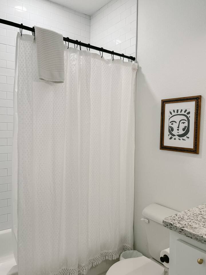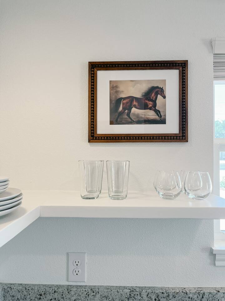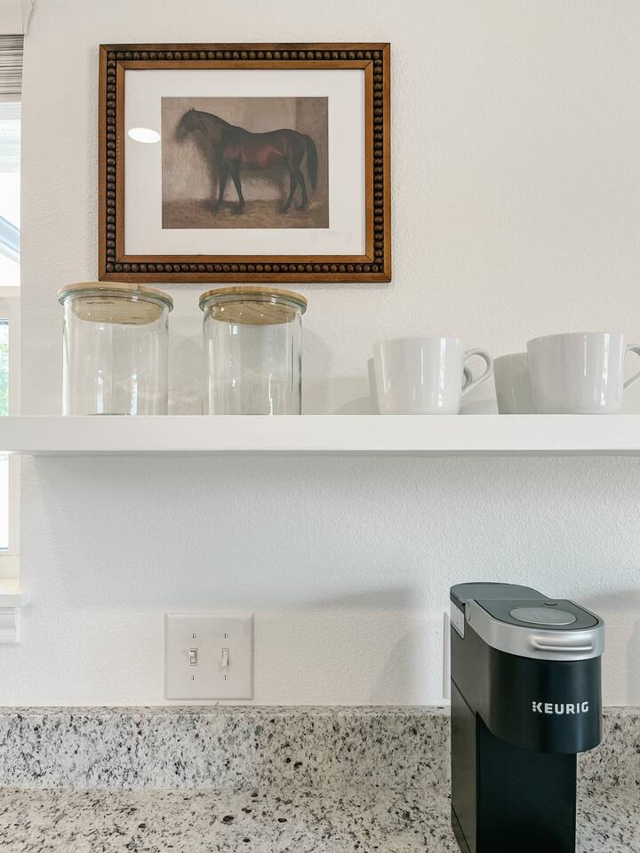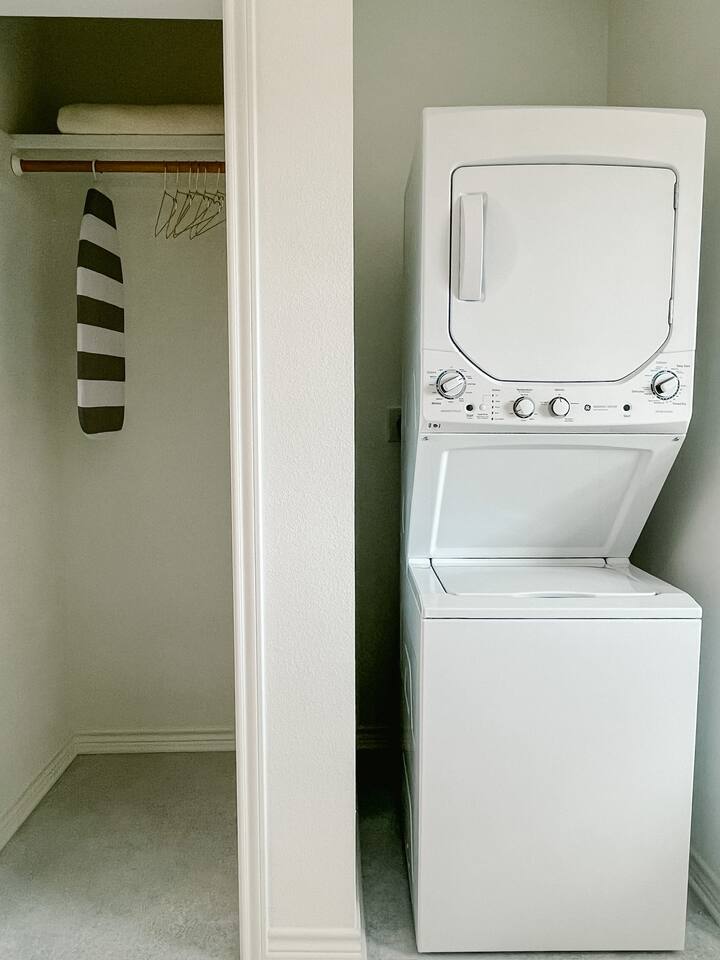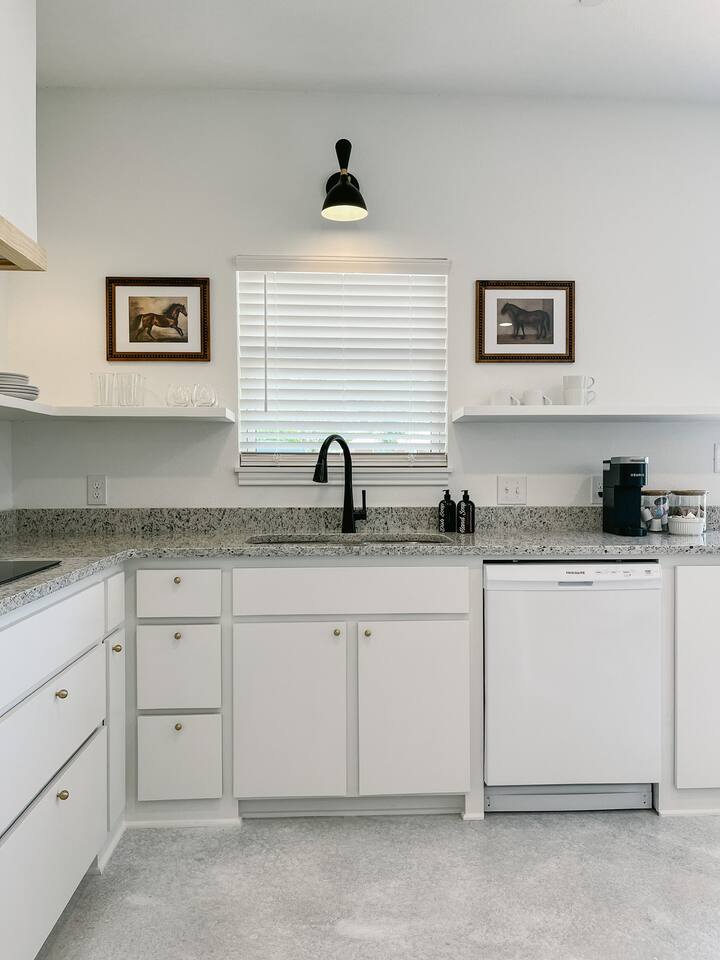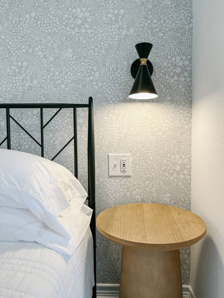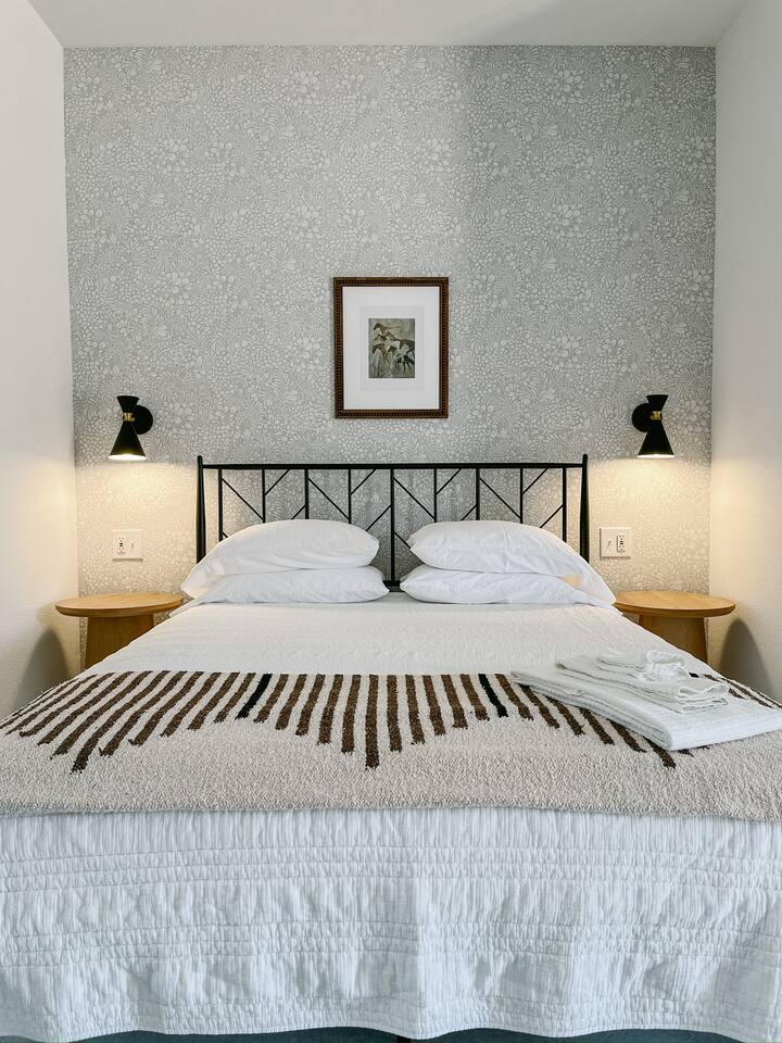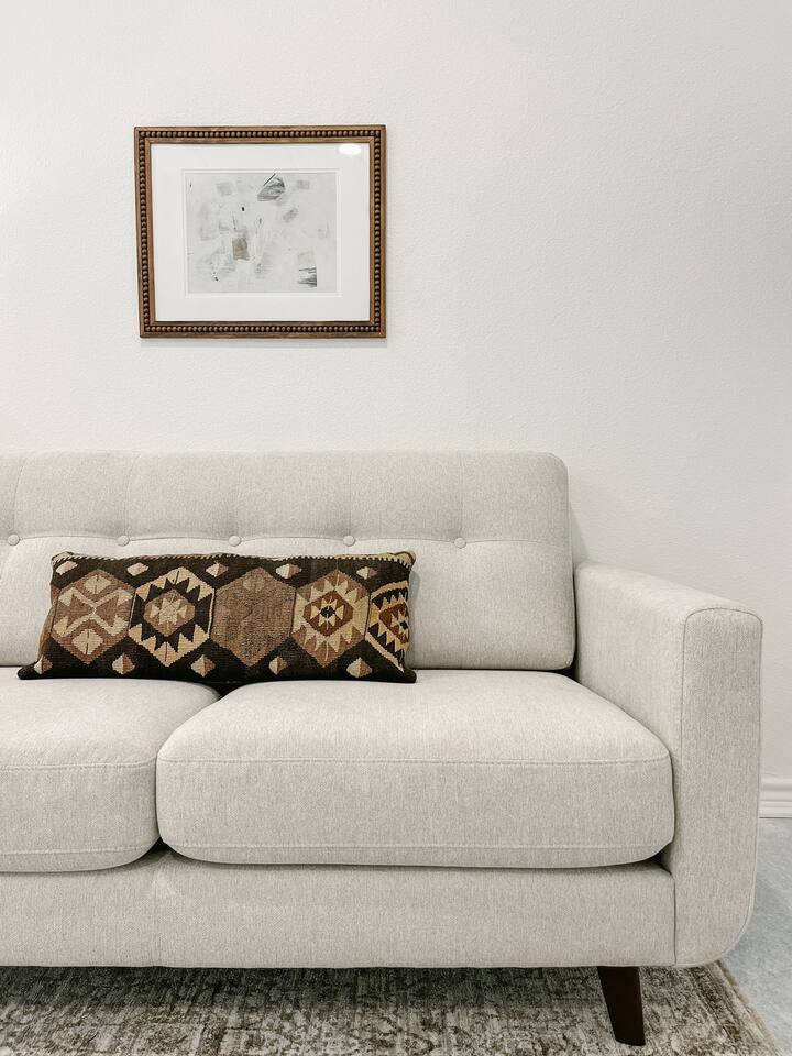 Our mid-century inspired studio is ideal for solo travelers or for couples seeking the most stylish accommodations in Abilene. The space is professionally designed and features polished concrete floors, a queen-sized bed, a modern kitchen with stovetop and coffee provided, dining table, fast wifi, in-suite laundry, 40" TV and loveseat, private back patio, and a sleek bathroom. Moments from ACU, downtown Abilene, Hendrick Hospital, HSU, and more. Thanks for staying with us!