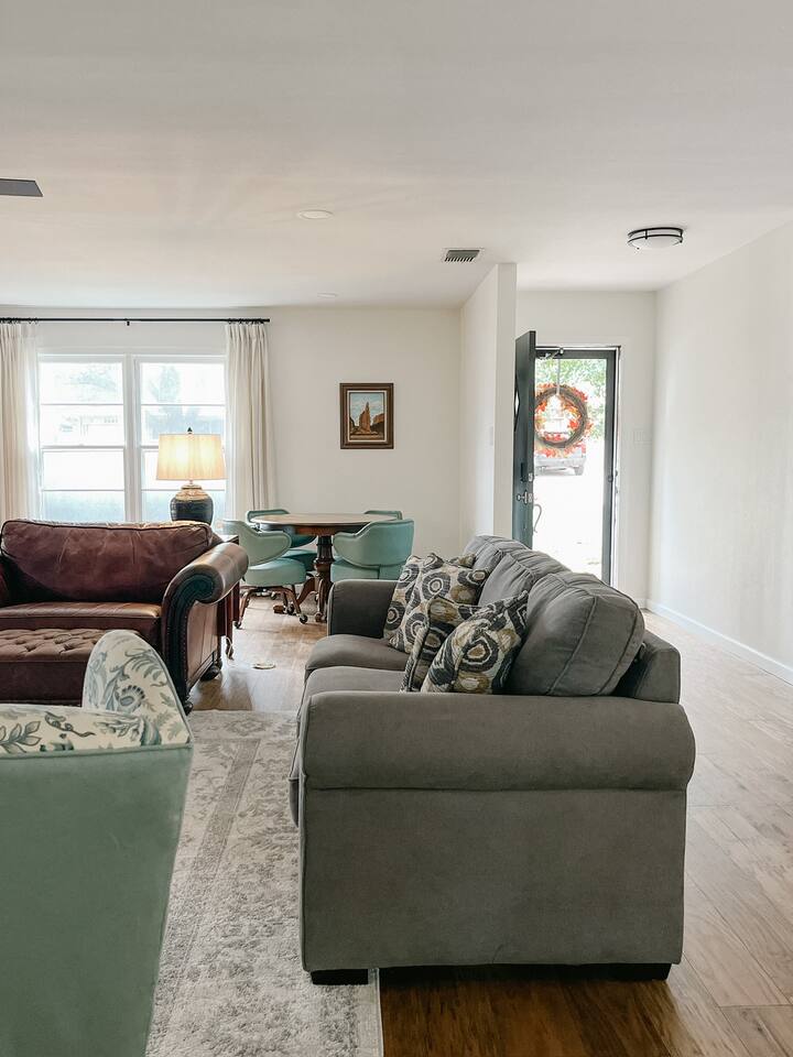 A tranquil escape in the heart of North Abilene. The Gem offers a beautifully updated spacious home with stunning kitchen, bathrooms, and living spaces. Perfect for families or groups seeking a comfortable and stylish getaway. The Abilene Heights neighborhood is located close to HSU, ACU, Hendrick Medical Center and a short distance from the Allen Ridge shopping center, local attractions, and parks and downtown Abilene!
