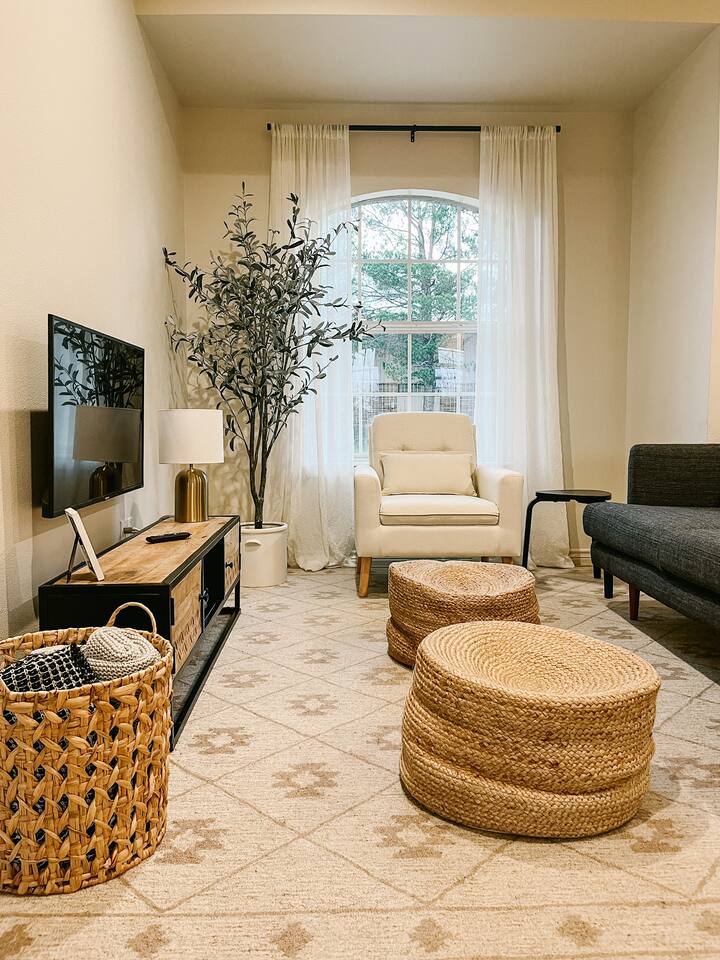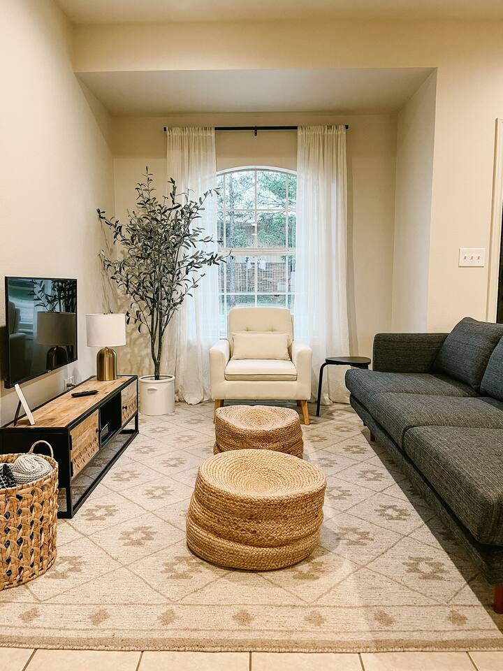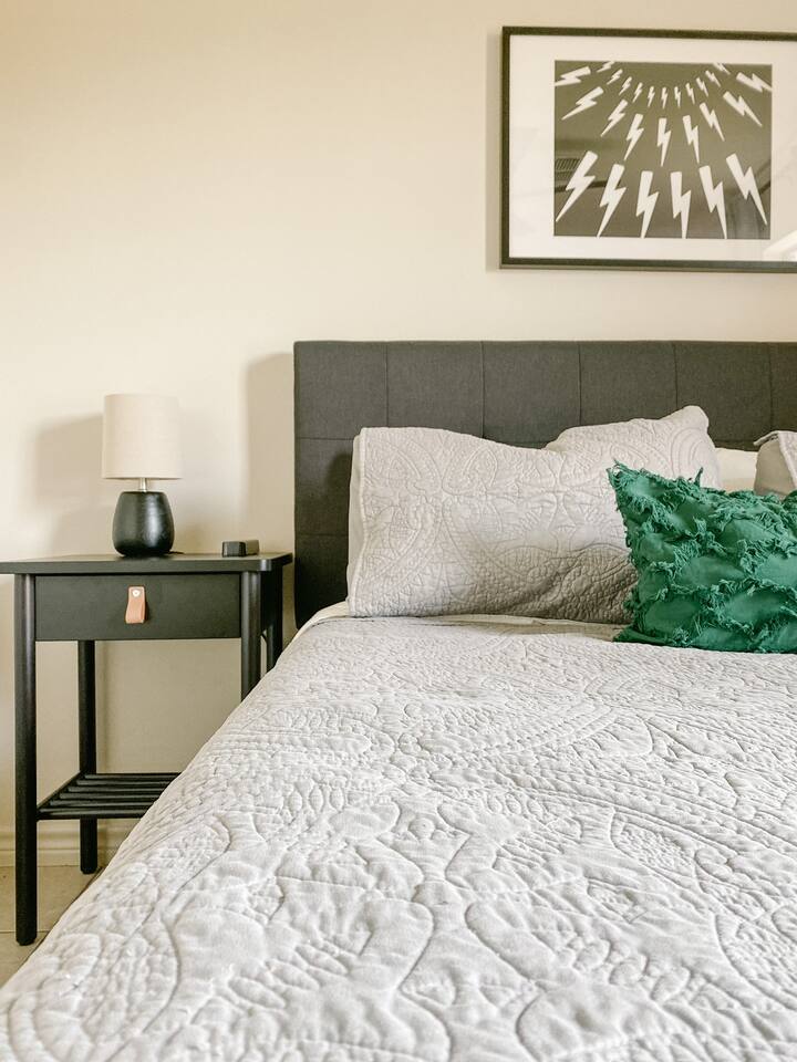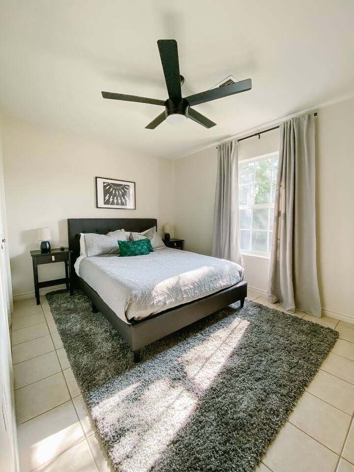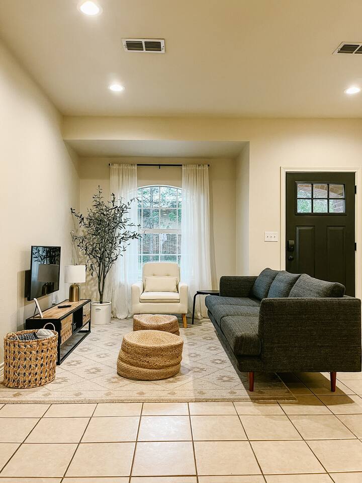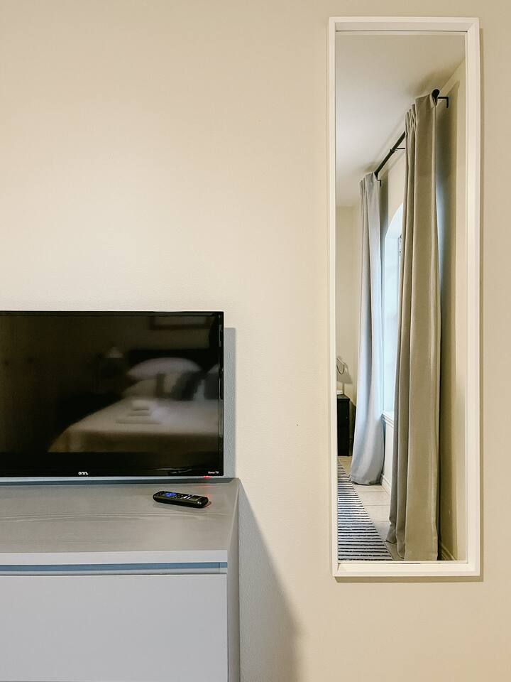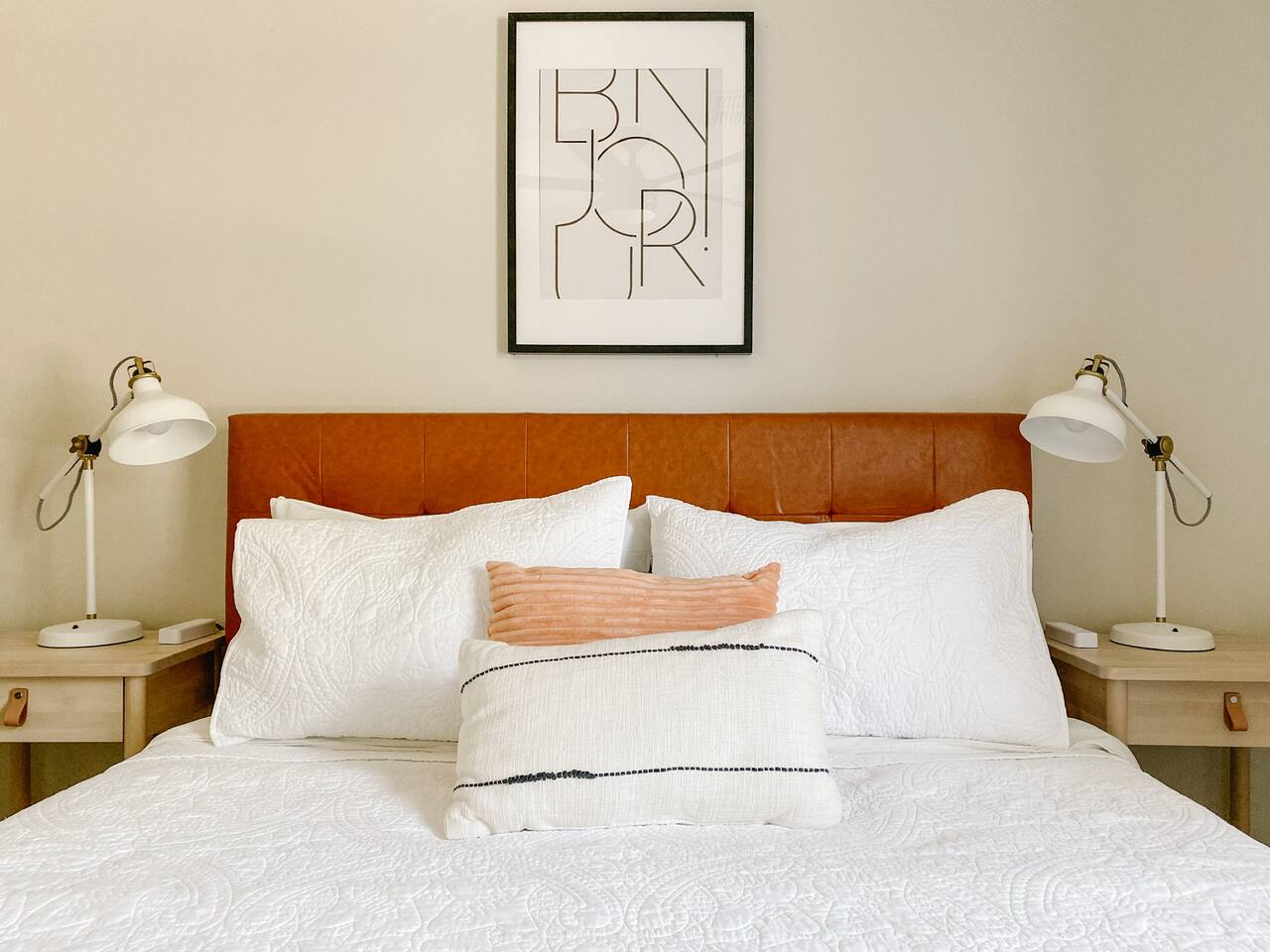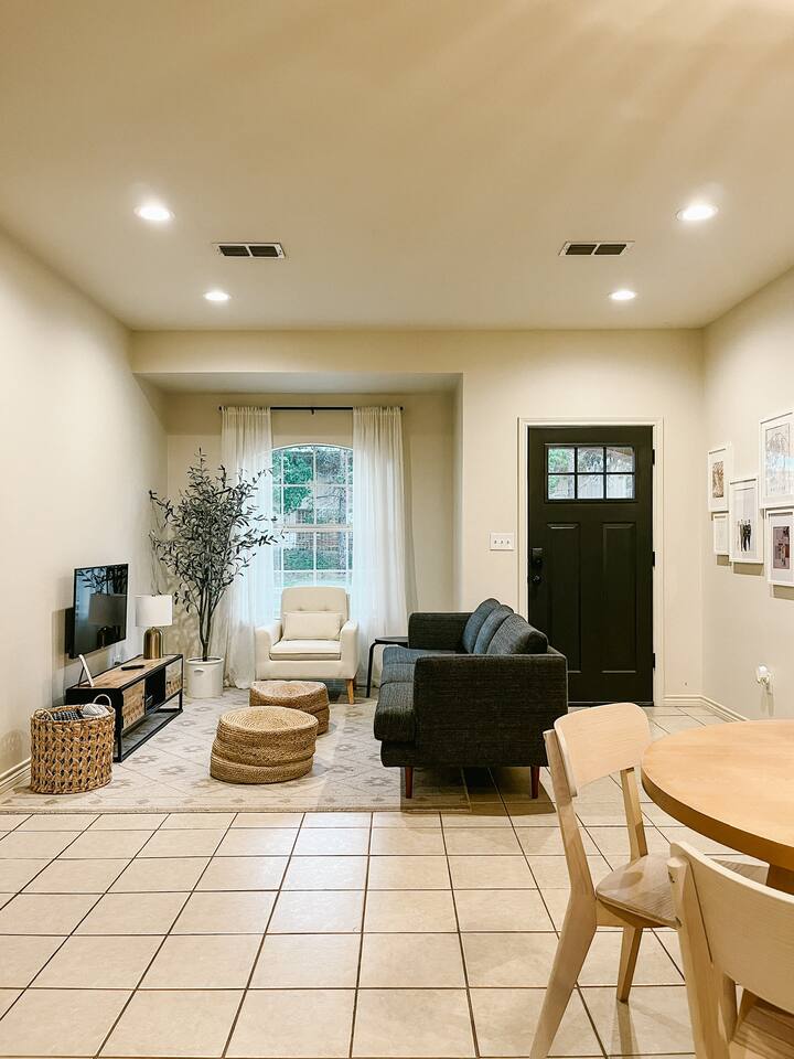 The Ruby offers an open and welcoming living space furnished with a comfortable couch, two seating poufs, a smart TV, and fast WIFI. The kitchen is ready and equipped with the essential cooking utensils you need: cookware, dinnerware, eating utensils, wine glasses and bottle openers. A Keurig coffee maker, coffee pods, cream, and sugar are also provided. The cozy dining area seats 4 at the table, with room for a few more at the bar. Enjoy a home-cooked meal there, or check out our curated Abilene guidebook for restaurant recommendations! There is an in-unit laundry area available to you, including an ironing board and iron for your use. Each bedroom is uniquely decorated and comfortably set with a queen bed, dresser, closet, full length mirror, and night stands to help you feel more at home. Every room is equipped with two USB charging stations as well, just in case you forgot your phone charger. The bathrooms are updated and sparkling clean. We supply extra towels, body wash, shampoo, hand soap, make-up removal wipes, and hair dryers for your convenience-- everything you need to be comfortable. With a large, private backyard The Ruby is a great place to enjoy a West Texas sunset. Whatever brings you to Abilene, thanks for staying with us!